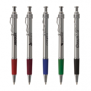 The Krypton Pen is an able and economical pen for all your writing and promotional needs. Pen barrel comes in 7 vibrant translucent colors, with a single color imprint to display your logo or message. This pen has a soft dimpled rubber grip that matches the vibrant colors of both the translucent barrel, the solid clip and plunger top. This pen comes with a standard black medium point refill.